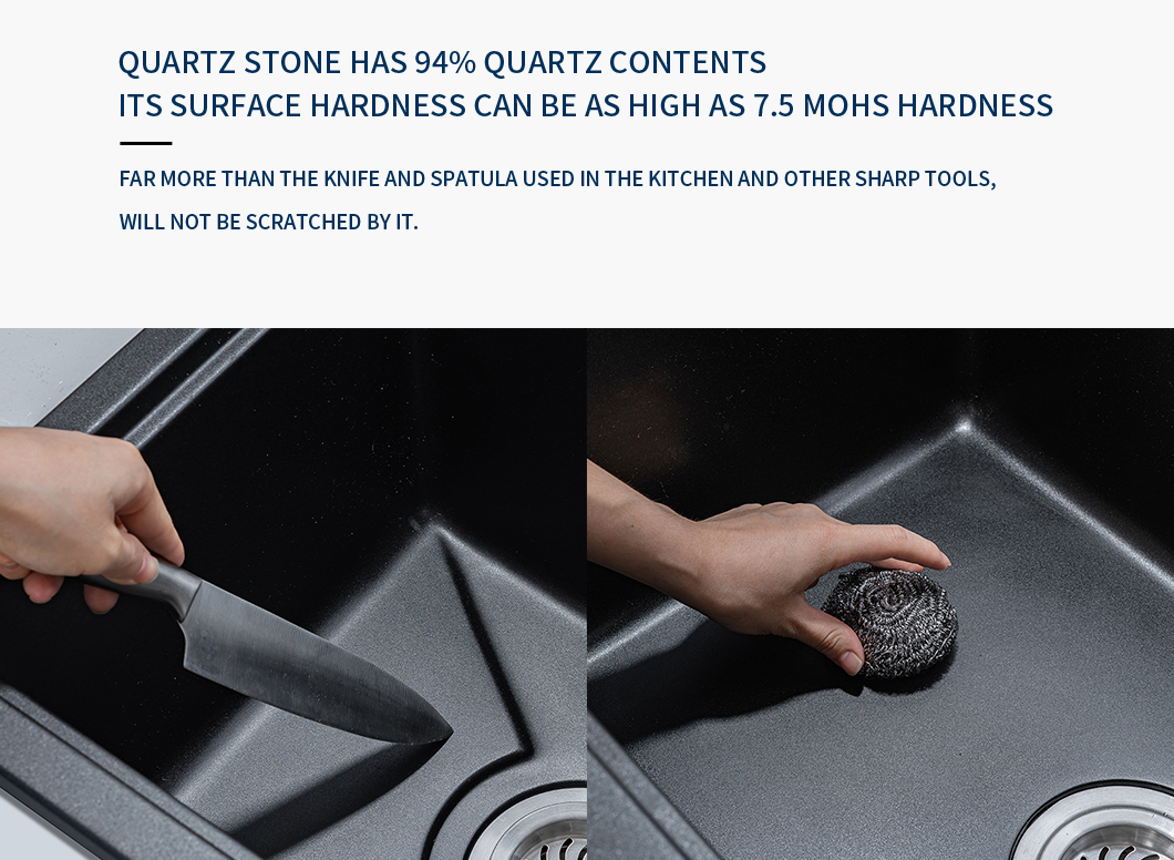 Durability: Quartz sinks are highly durable and resistant to scratches, chips, and stains. They are made from a combination of natural quartz crystals and resin, which creates a strong and resilient material. Quartz sinks can withstand the rigors of daily use and maintain their appearance over time.