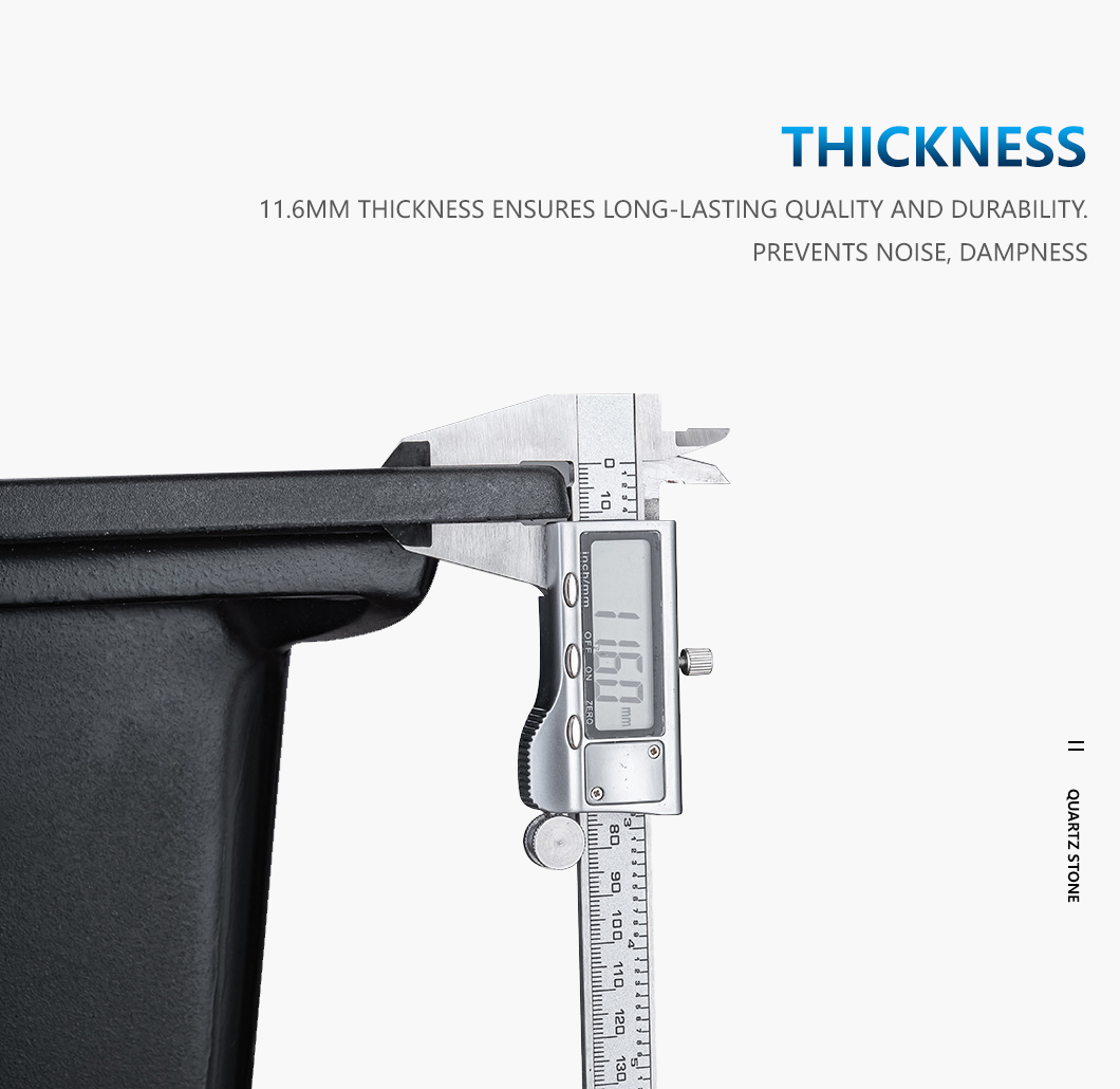 Noise Reduction: Quartz sinks have excellent sound-dampening properties. The dense and solid nature of quartz material helps reduce the noise generated by running water, dishes, and other activities in the sink, creating a quieter and more pleasant environment in the kitchen.